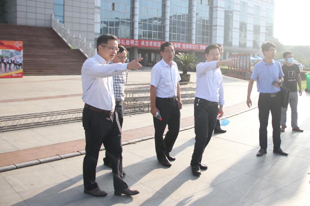 本网讯:9月20日,我校将正式迎来2020级新生。为统筹做好常态化疫情防控和2020年迎新工作,9月18日,由校长潘慧明带队,党委副书记汪达,副校长覃彩芹、丁远坤、鲁旭东,相关职能部门负责人实地查看了我校迎新工作的准备情况。