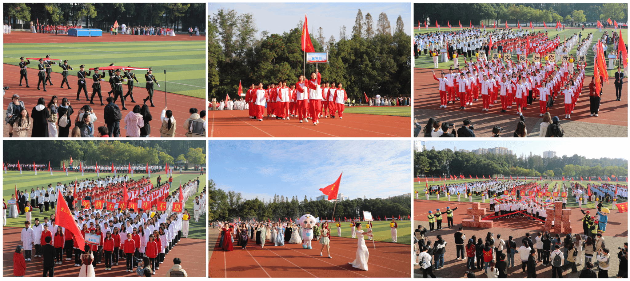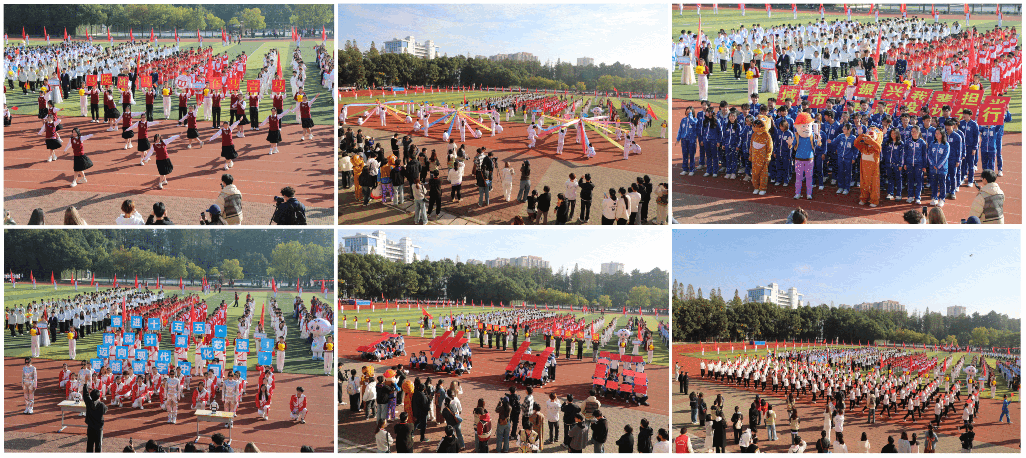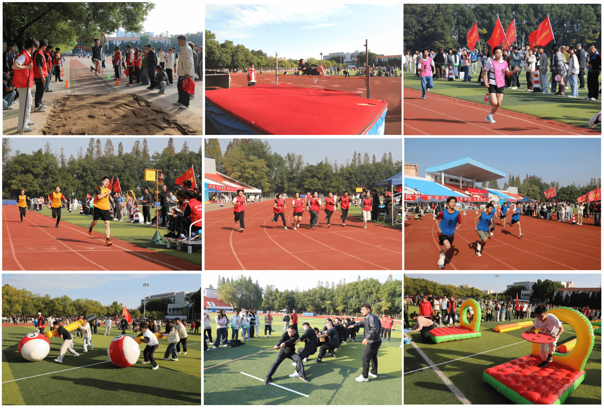 开幕式后的文体表演融合了传统文化与现代元素,为现场观众呈现了一场视听盛宴。本届运动会历时两天,设学生组与教工组两大类别,来自37支代表队的1449名运动员(含学生与教职工)围绕53个体育项目展开激烈角逐。比赛涵盖了田径类(跑步、跳高、跳远等)、传统体育项目(跳绳、拔河等)以及兼具趣味性和协作性的团体项目,如“齐心合力”“极限闯关”“滚滚向前”“聚力腾飞”等。