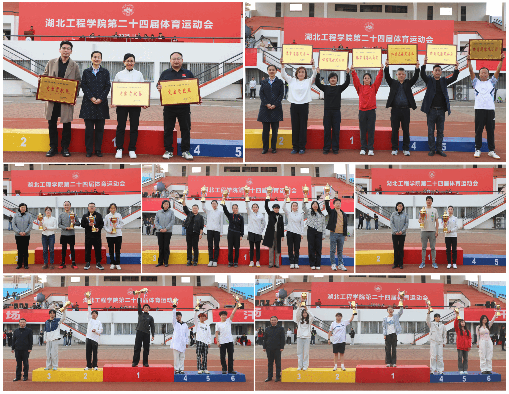 闭幕式上,校领导卢雪梅、李渺、郑俊分别为获得“突出贡献奖”“体育道德风尚奖”的单位,以及获得教工组一、二、三等奖的分工会和学生组男、女子团体总分前六名的单位颁发奖牌与奖杯。