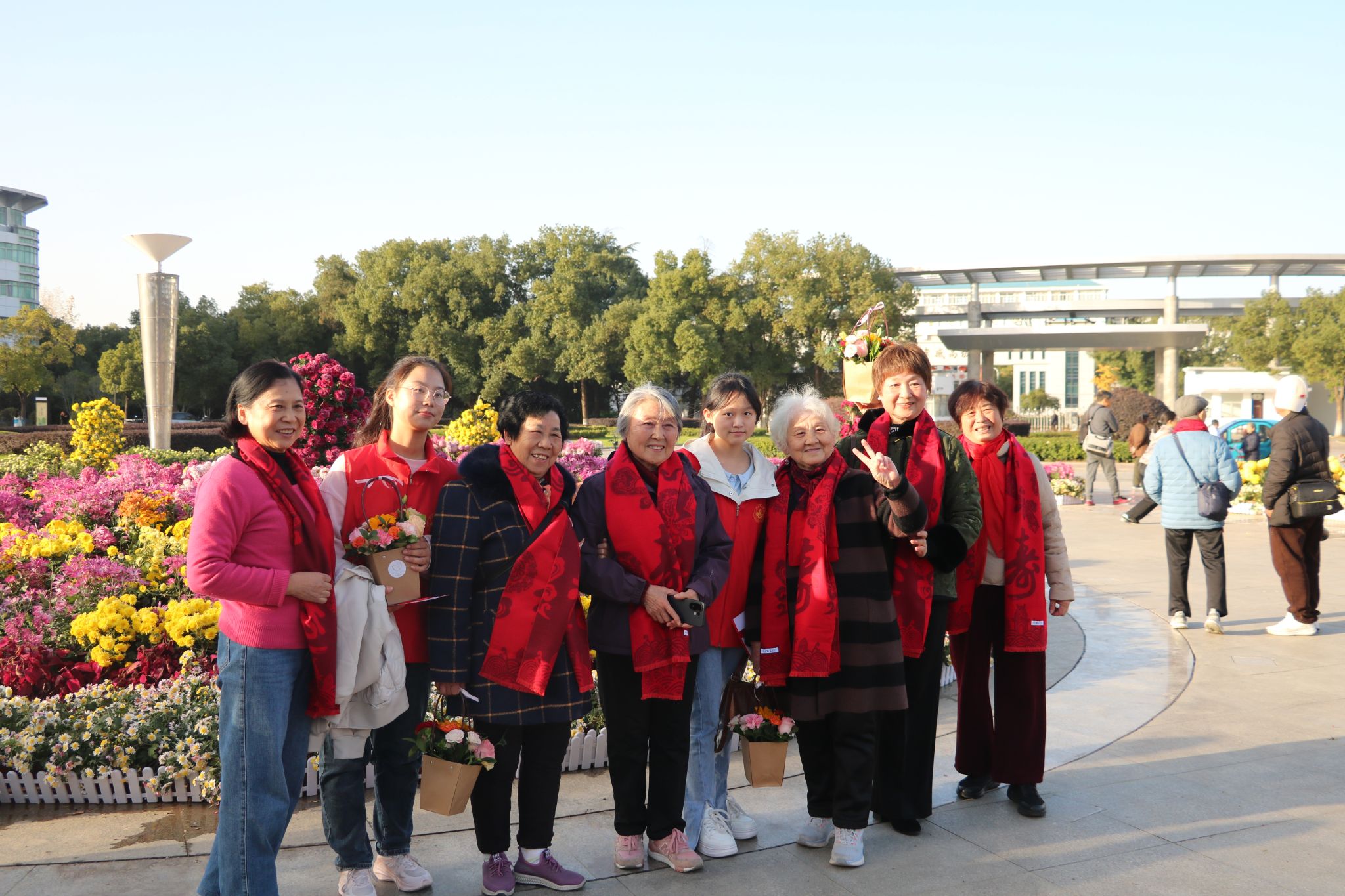 祝寿会结束后,老寿星们在工作人员和志愿者的引领下移步人文广场赏菊。大家流连于芳丛之间,合影留念,一张张笑靥比秋菊更加灿烂。此外,离退休工作部(处)一行还专程前往未能到场的整90岁寿星家中探望,将学校的关爱与祝福精准送达。