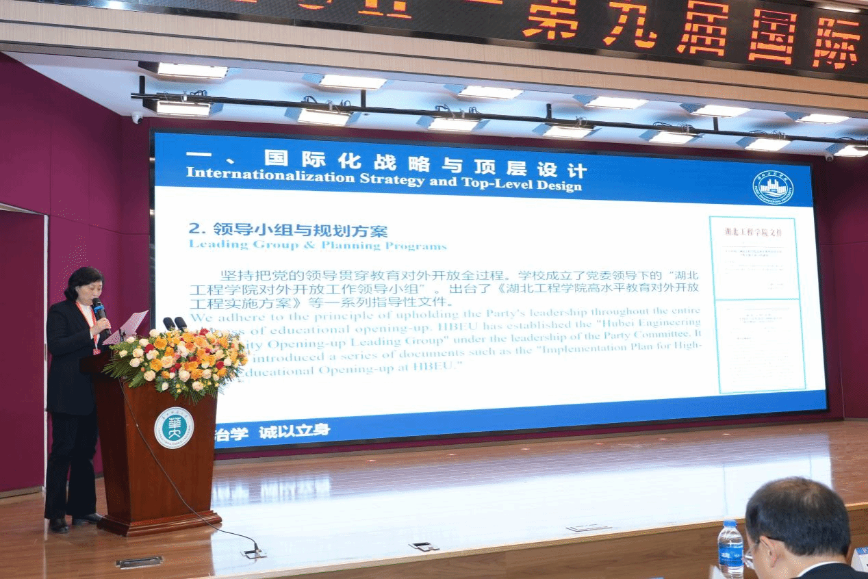 在高等教育国际交流平行专场活动中,8位海内外高校嘉宾聚焦“共融共创 — 打造教育国际合作新生态”主题进行主旨交流发言。副校长李渺受邀做题为“以国际化赋能新发展、以高水平服务新格局”的报告,从国际化战略与顶层设计、师资队伍建设与国际交流、学生国际视野与人才培养、高质量教育对外开放新格局四个方面,介绍了我校在深入贯彻国际化发展新理念、持续推进教育对外开放高质量发展方面的思考与实践。她表示,湖北工程学院将充分利用好国际教育合作专场这一跨省域、全国性教育对外开放平台,与更多的国内外同仁建立广泛联系,开展务实合作,为湖北工程学院全面建设工程教育卓越、办学特色鲜明的国内应用型一流大学强基、赋能。